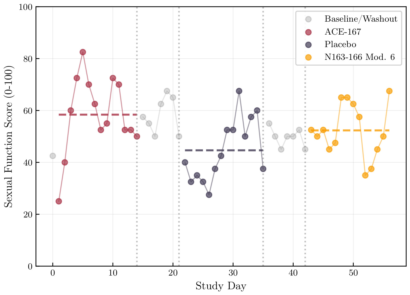 ACE-167 showed higher scores for sexual function and sleep.