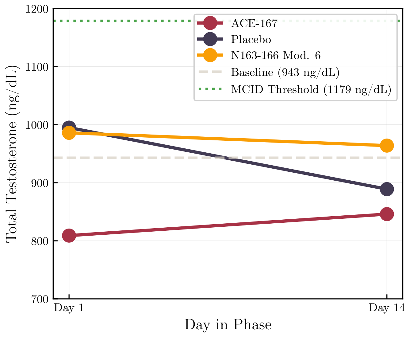 Enroll lower-baseline participants (500–700 ng/dL)